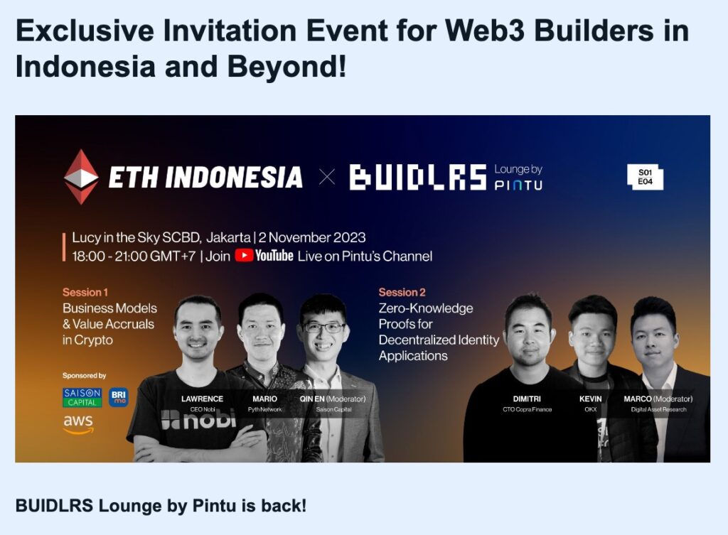 Siap Menjadi Web3 Builders Abad Ini? Yuk Join! Proudly Present: ETH Indonesia X BUIDLRS Lounge by Pintu